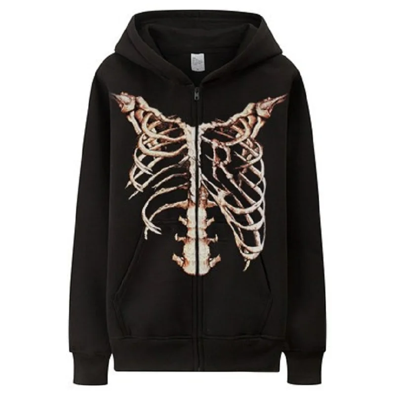 Толстовка с капюшоном, в готическом стиле, на молнии, Y2K, в стиле Харадзюку, в Корейском стиле, с принтом черепа, в готическом стиле, однотонная, в стиле ретро