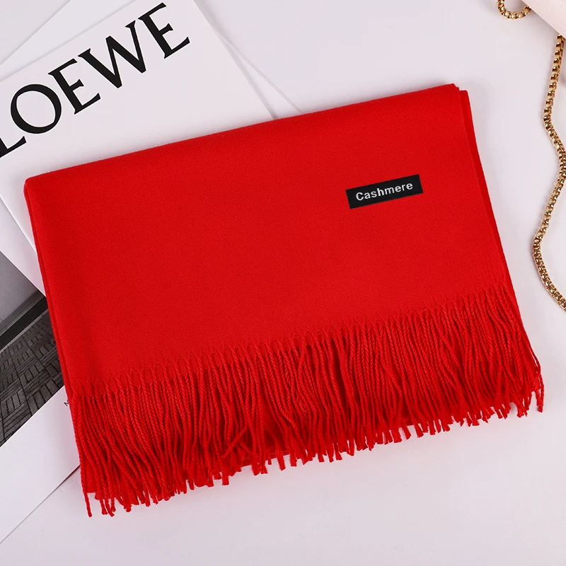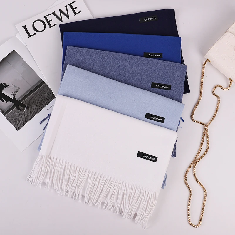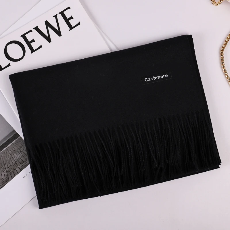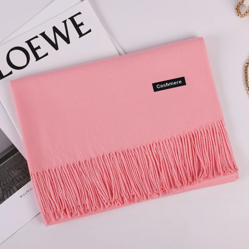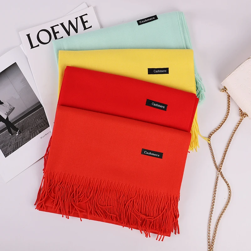 Шарф женский зимний однотонный с кисточками, кашемировые шали, 2021