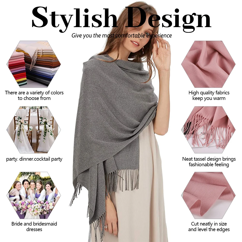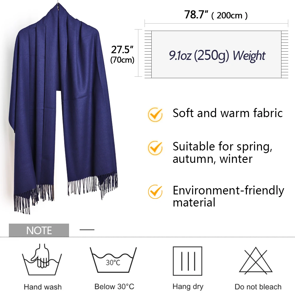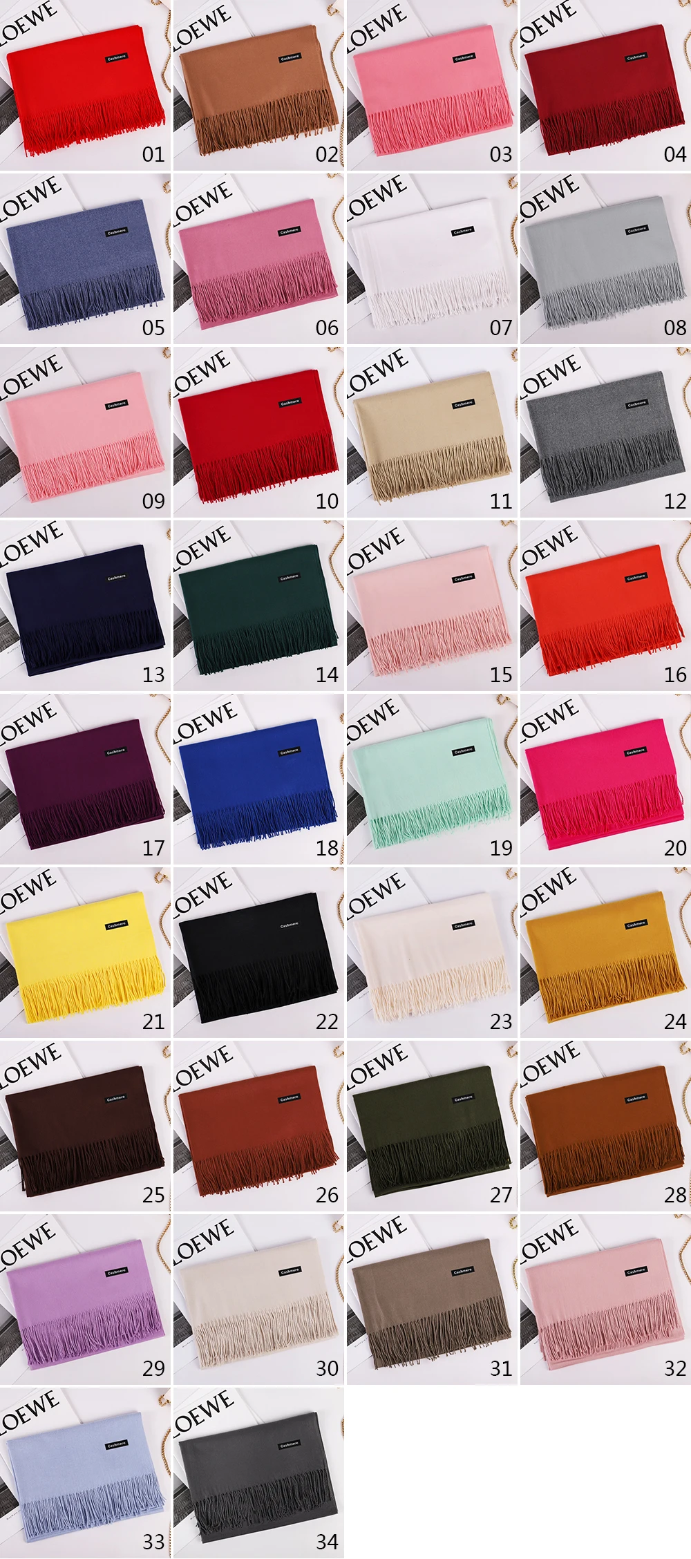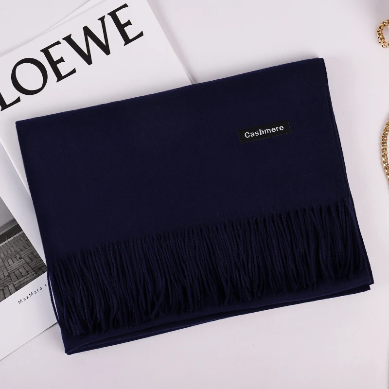 Шарф женский зимний однотонный с кисточками, кашемировые шали, 2021