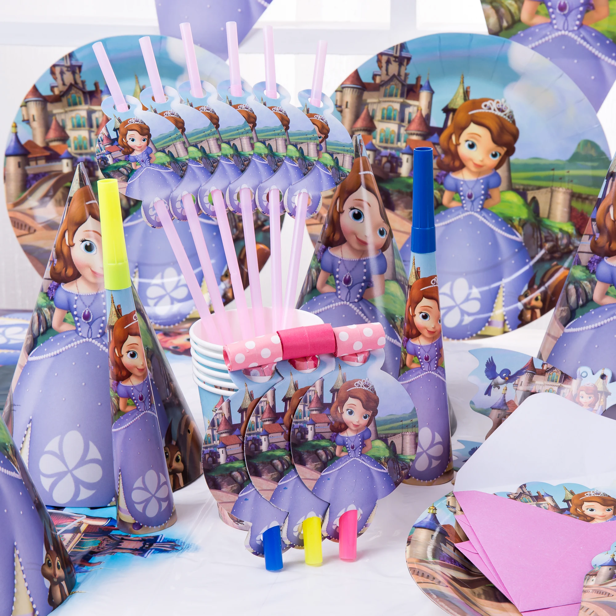Дисней Принцесса София вечерние принадлежности для дня рождения одноразовая посуда тарелка скатерть соломенная детская душевая девочка детское украшение