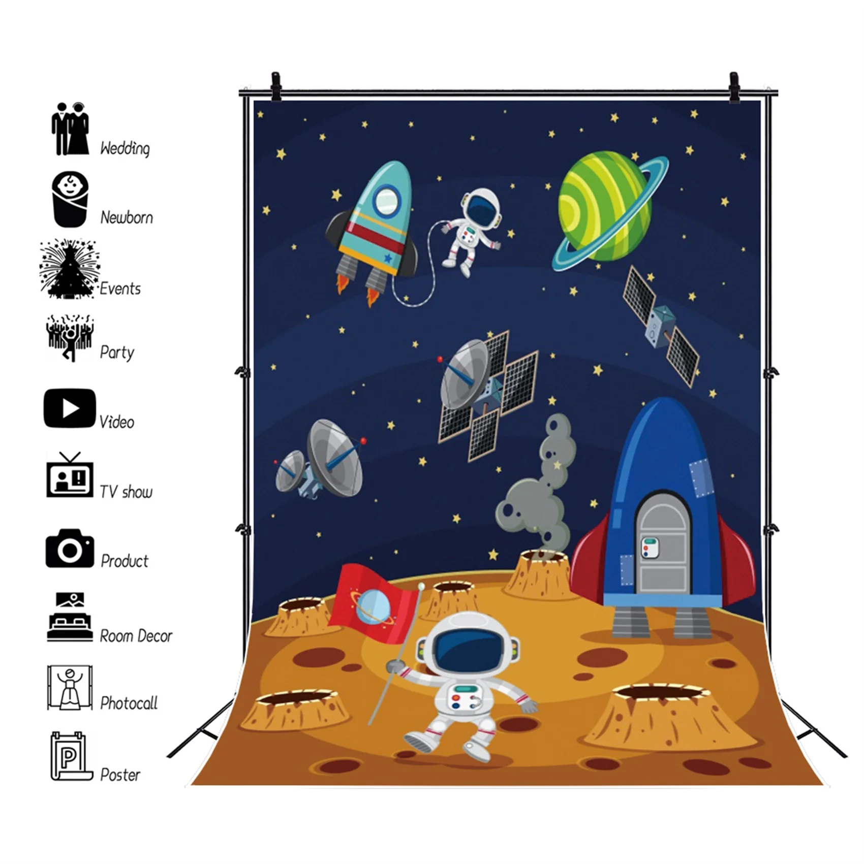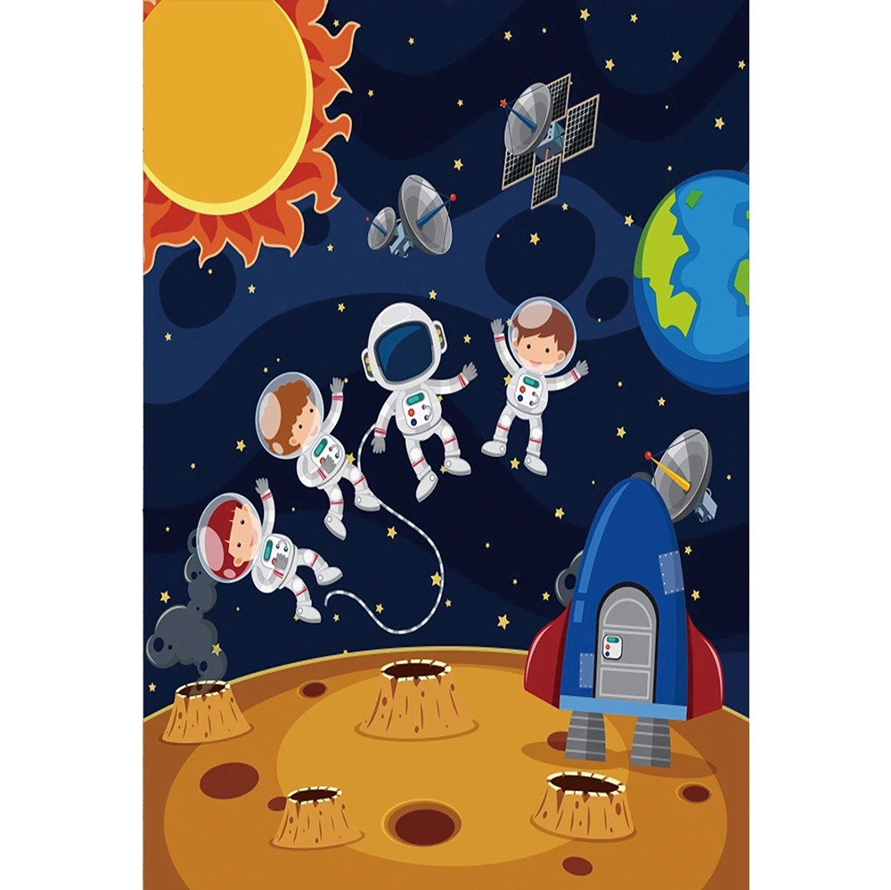 Laeacco Вселенная космическая станция планета детский день рождения астронавт фотографический фон фотостудия