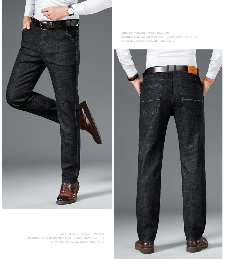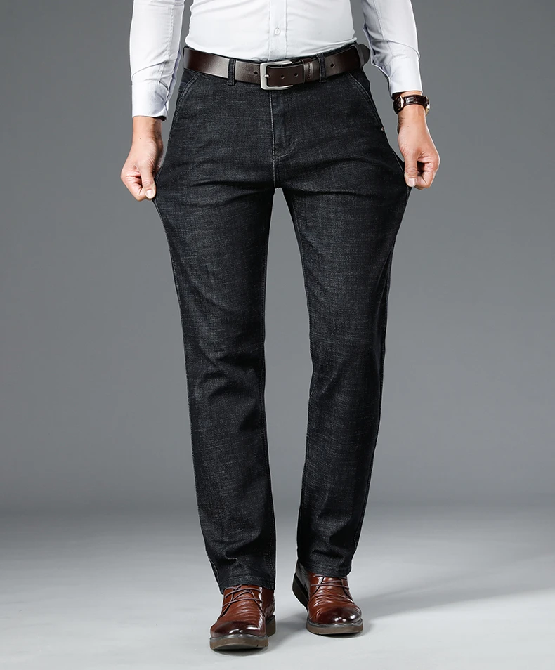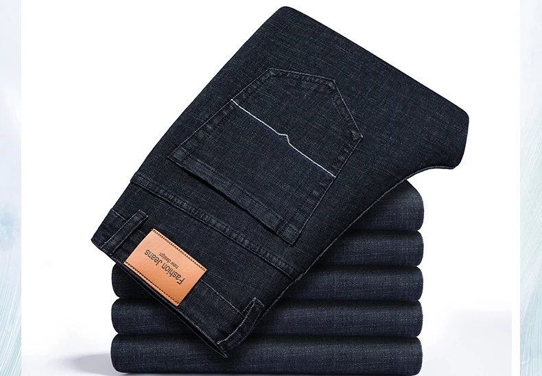 Мужские классические плотные джинсы в Корейском стиле, облегающие деловые Модные свободные Стрейчевые джинсовые брюки, мужские брендовые мягкие повседневные брюки