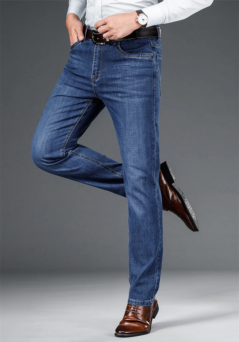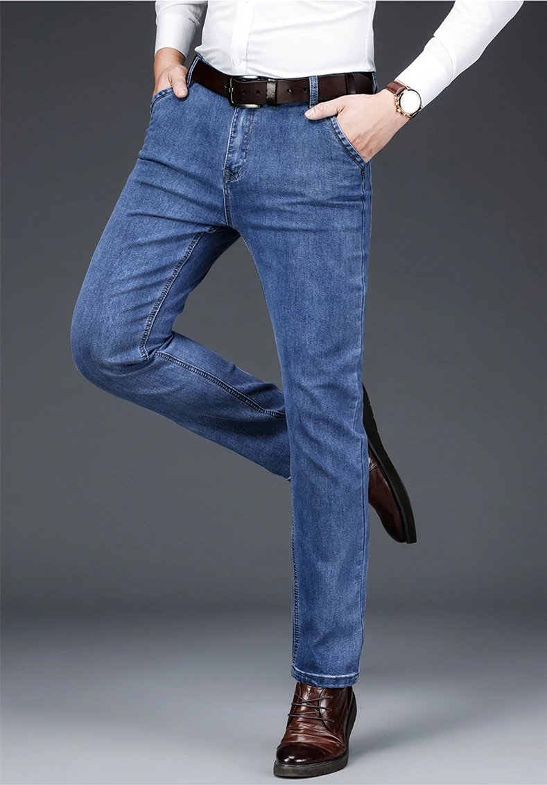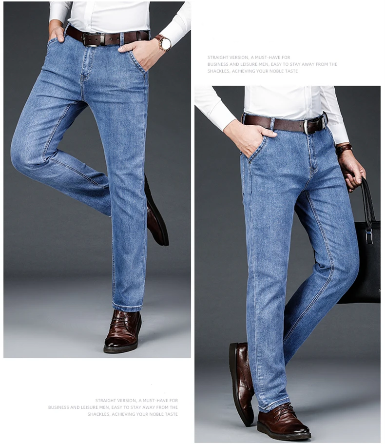 Мужские тонкие прямые свободные джинсы в классическом стиле, деловы...