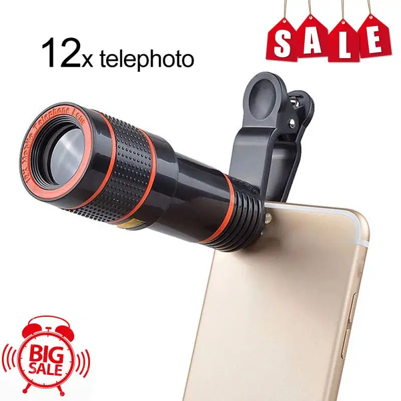 Монокулярный телескоп 12X, компактный зум, водонепроницаемый, HD, с зажимом для телефона, для смартфона Iphone, Samsung