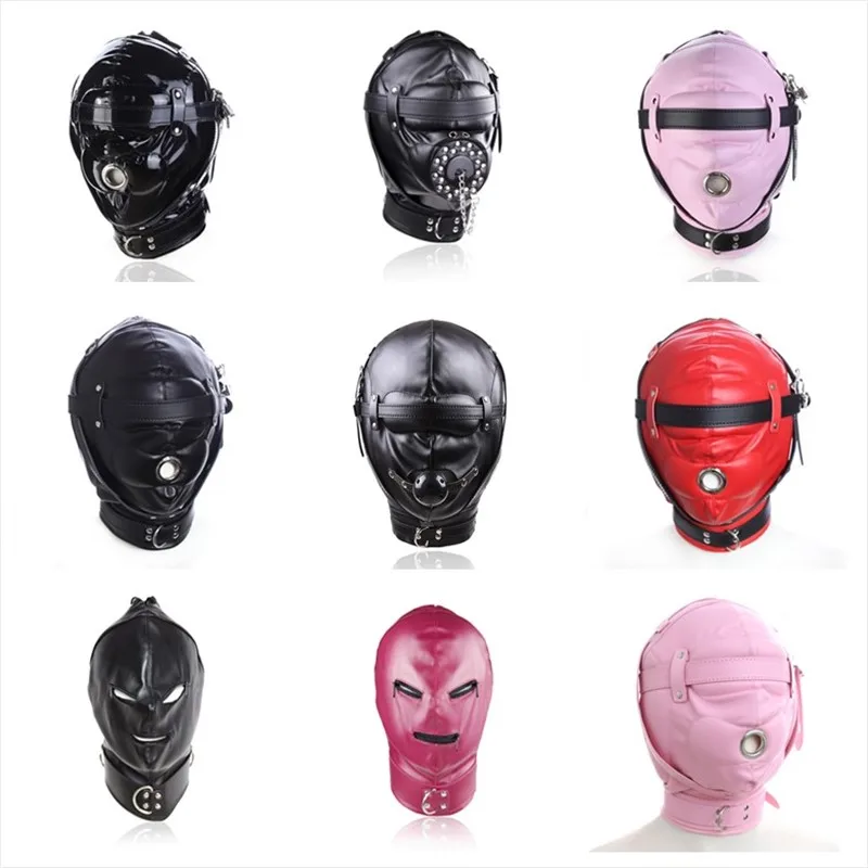 Кожаный капюшон для сенсорных игр БДСМ, для взрослых, маска для фетиша, бондажа на всю голову, капюшон с приколами, секс-игрушки для рабыни