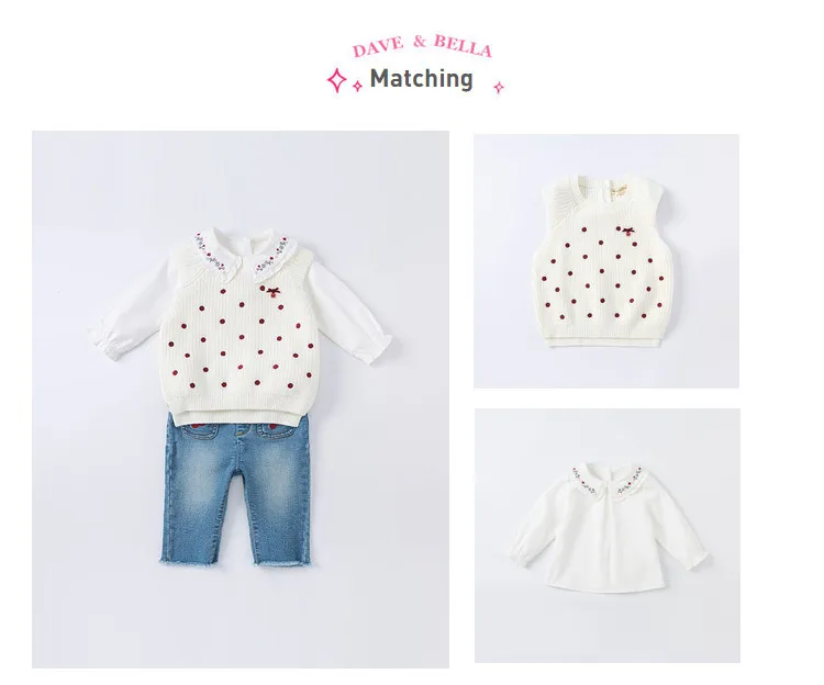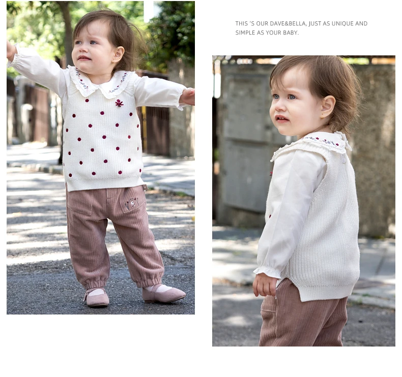 Осеннее трикотажное пальто в горошек с бантом для маленьких девочек