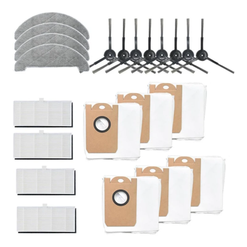 1. Изготовлен из высококачественного материала, прочный и практичный в использовании2. Фильтр может фильтровать твердые частицы, такие как пыль и примеси, и достичь эффекта высокой эффективности и чистоты3. Боковая щетка поможет вам эффективно удалить грязь и пыль с углов4. Как часть нормального обслуживания, его можно легко разобрать и заменить5. Тепло рекомендуется заменять запасные части каждые два-три месяца, чтобы держать подметание робота в его лучшей производительностиЦвет: серый + белыйМатериал: пластикПосылка:4 x Фильтр4 x Drag8 х боковая щетка6 х мешок для пылиТолько вышеуказанная посылка, другие товары не включены.Примечание: светильник и различные дисплеи могут привести к тому, что цвет товара на картинке немного отличается от реального. Допускается погрешность в измерениях +/- 1-3 см.