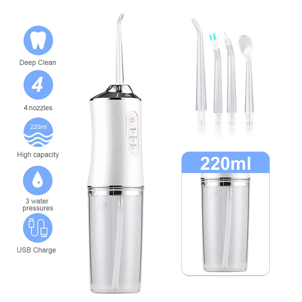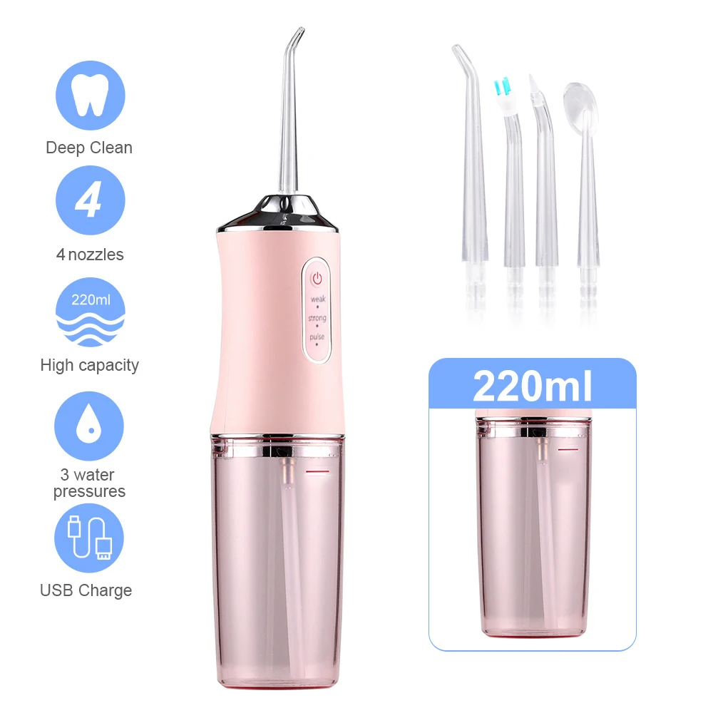 Портативный ирригатор для полости рта, USB зарядка 4 насадки 360 ° краску, уход за полостью рта Стоматологический Скейлер
