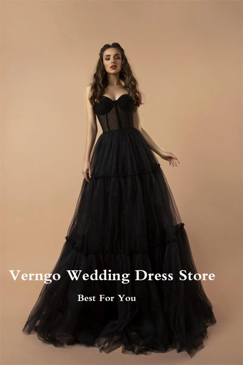Verngo 2021 черные тюлевые трапециевидные платья в горошек для выпускного вечера корсет для сердечек Длинные вечерние платья женские стильные вечерние платья