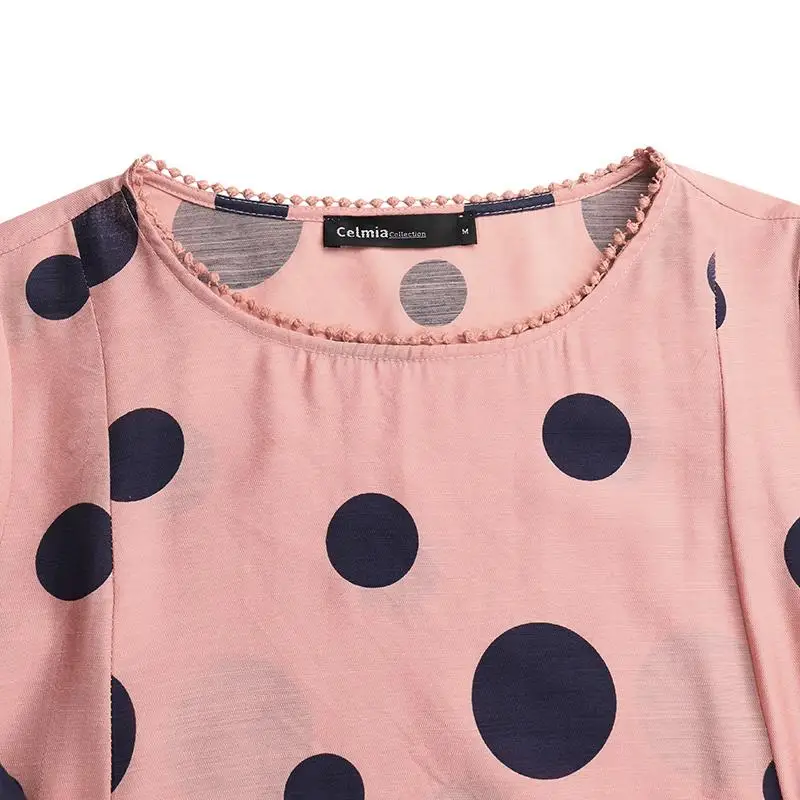 Элегантное офисное кружевное платье Celmia, женское богемное Макси-платье в горошек с круглым вырезом и лоскутным подолом, Повседневное платье с коротким рукавом 2021