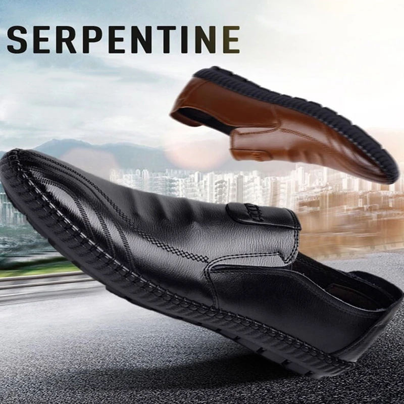 Мужские зимние кожаные повседневные туфли 2021, мягкие лоферы из ла...