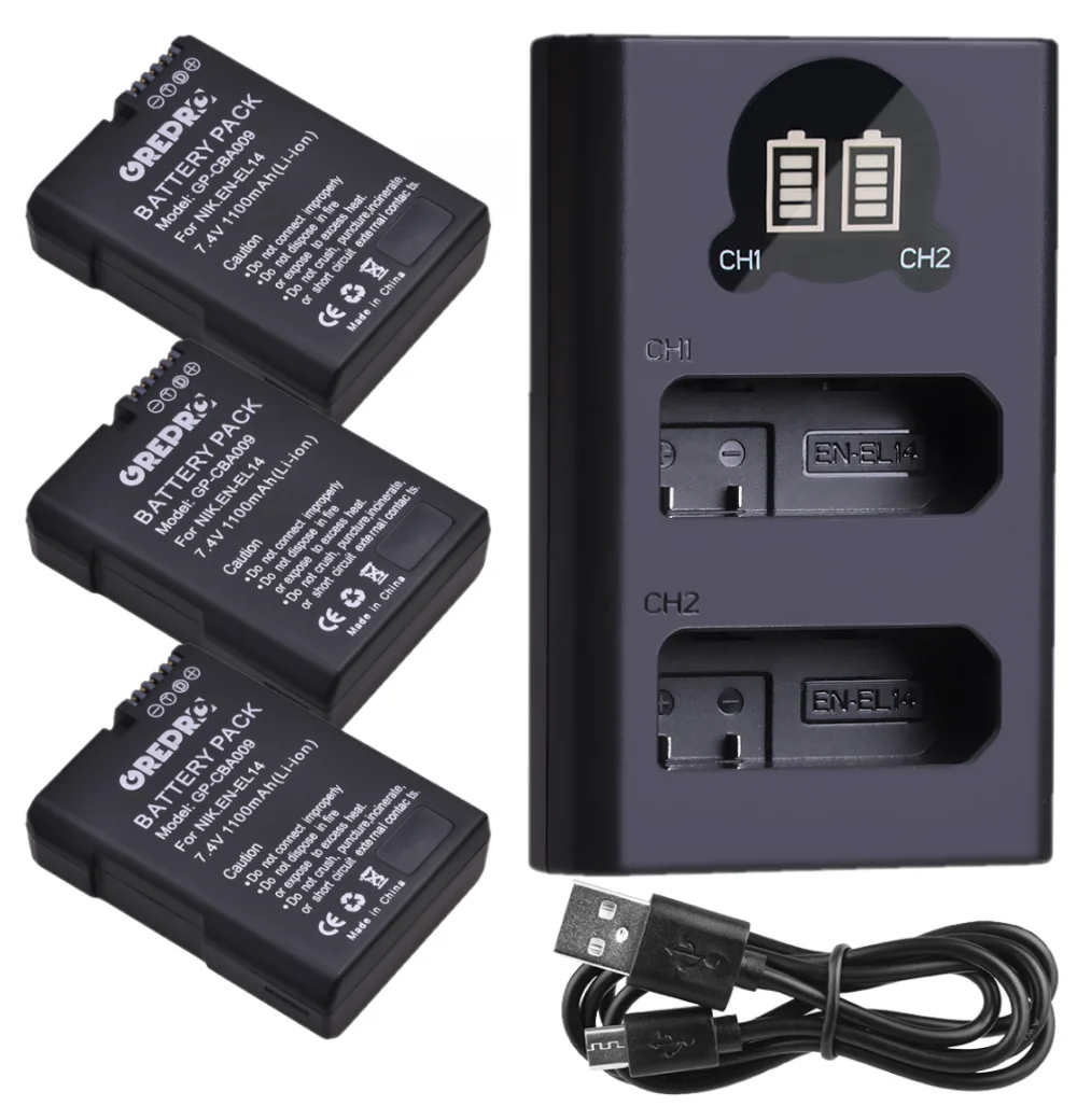 Аккумулятор EN-EL14 EN EL14 с двойным зарядным устройством для камеры Nikon EN-EL14a D3100 D5500 D5300 D5600 D3300 D3400 Coolpix P7000 D3500 DSLR