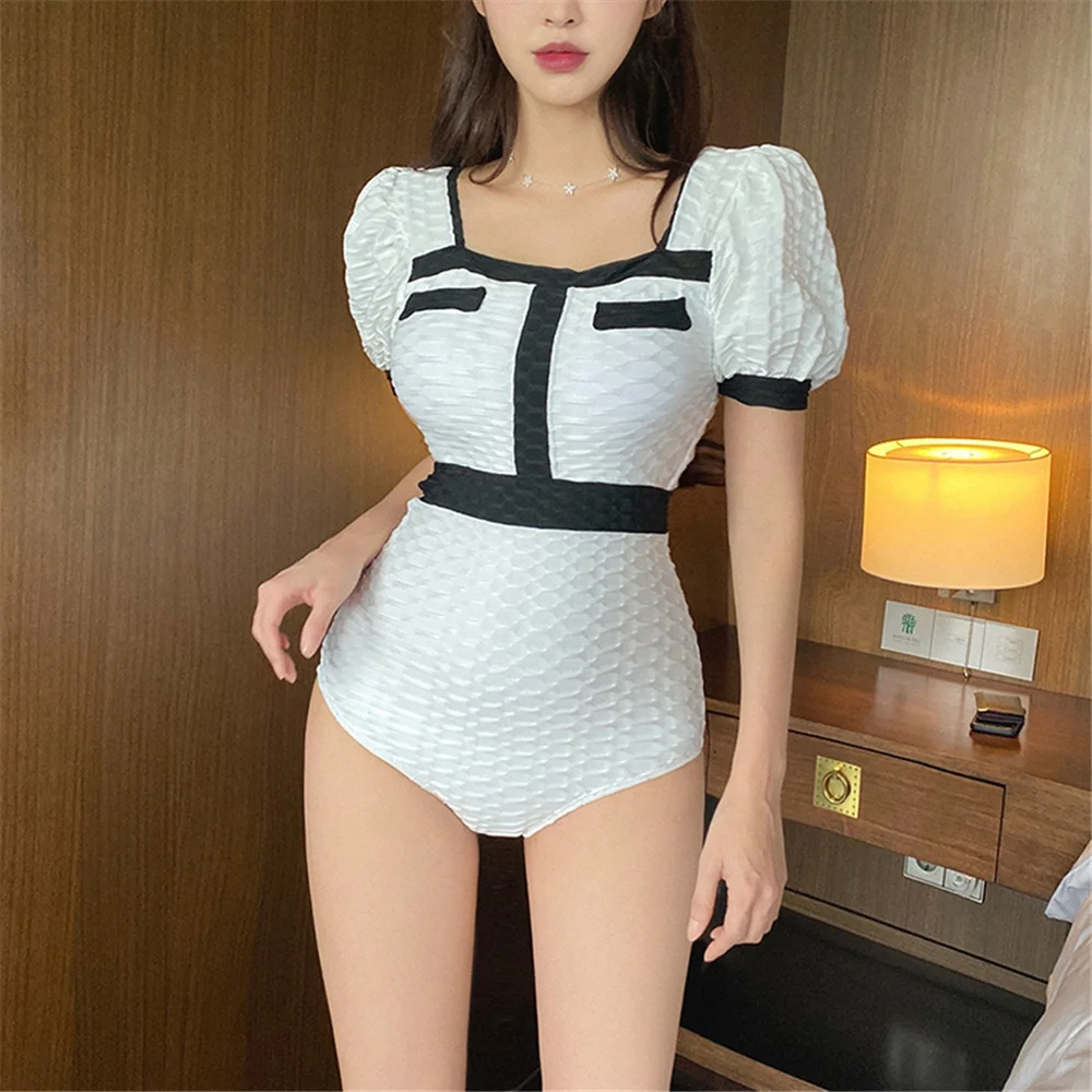 Цельный купальник в Корейском стиле, Женская однотонная одежда для ...