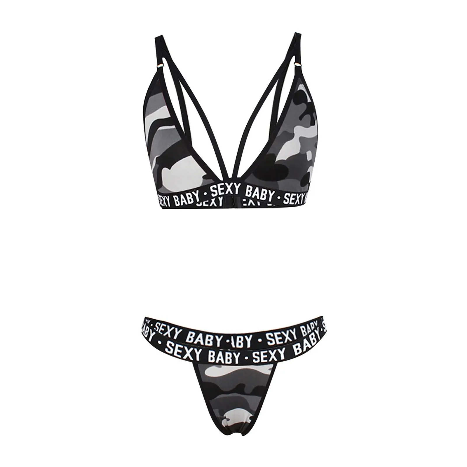 Женское нижнее белье с буквенным принтом, трусики-стринги, камуфляжное газовое нижнее белье, Новое сексуальное бикини, 2021, летняя пляжная одежда для плавания