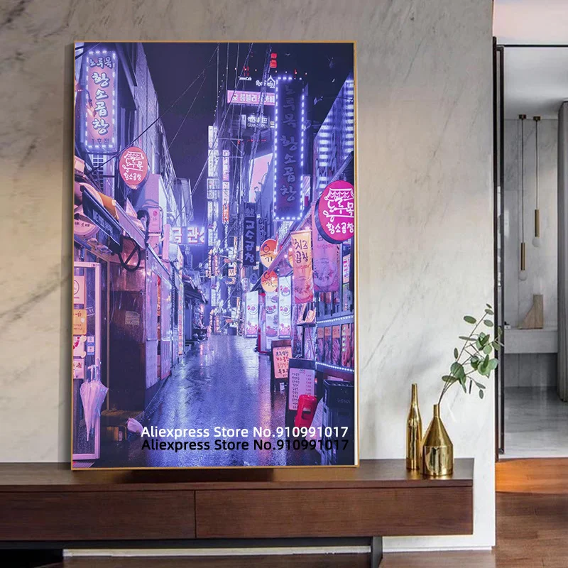 Красочная Настенная картина Будущее города, Современная неоновая картина в стиле Триппи для украшения гостиной