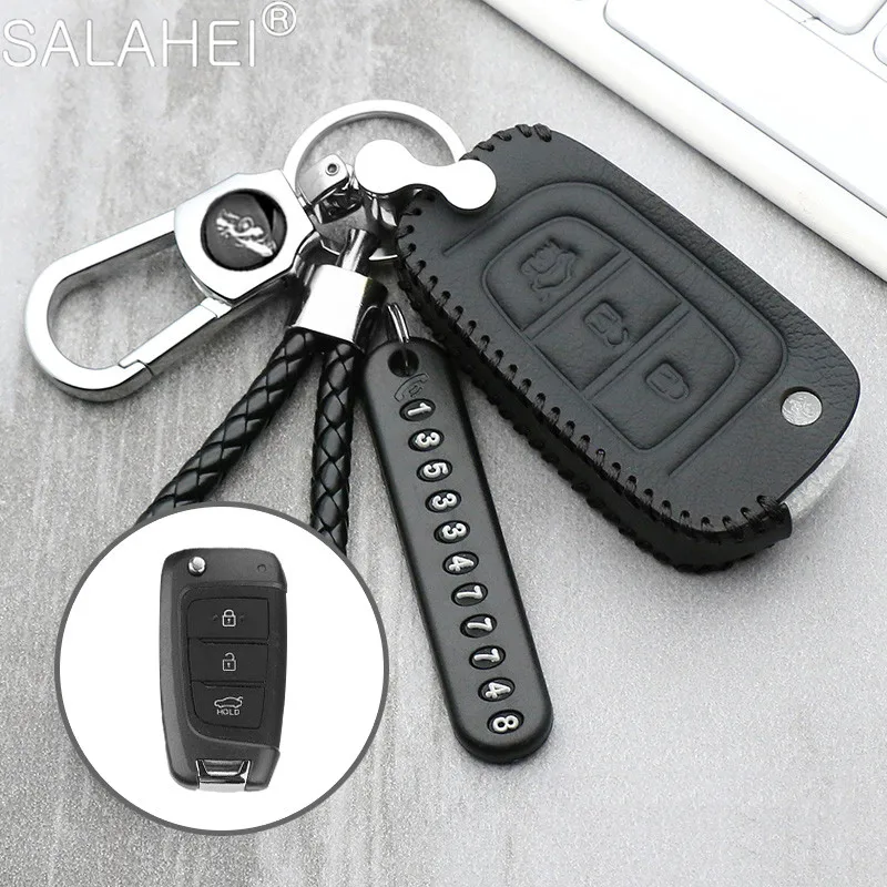Кожаный чехол для автомобильного ключа, брелок для Hyundai Fista La...