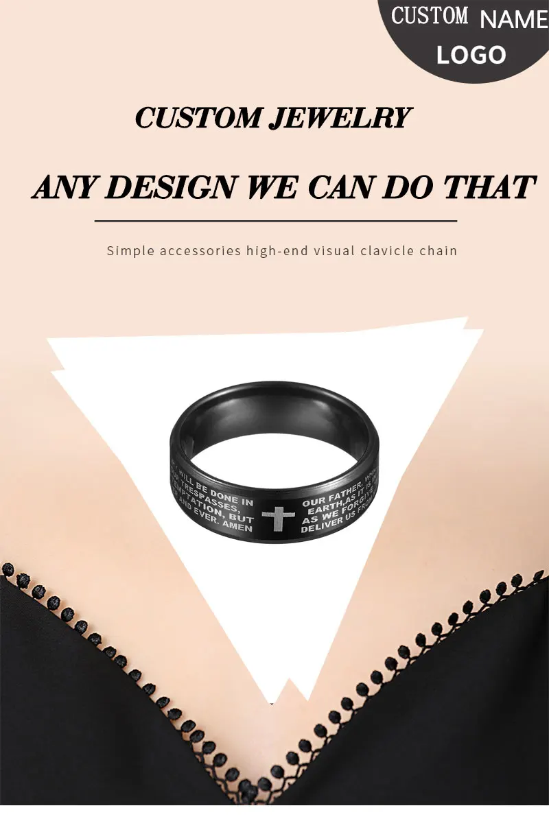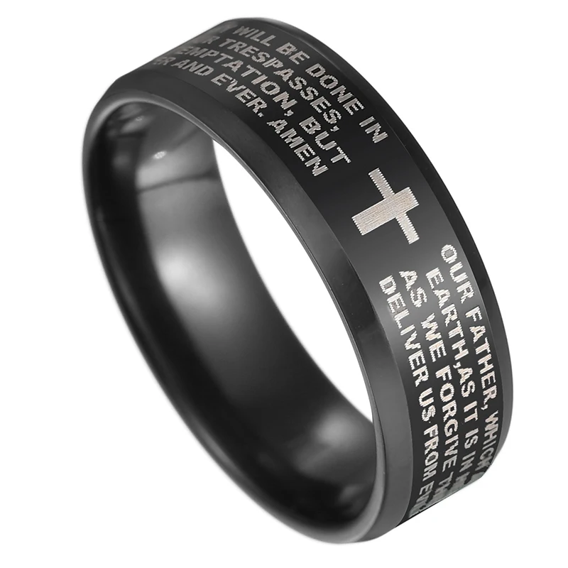 Кольцо из нержавеющей стали для мужчин и женщин, ювелирное изделие с надписью Библия молитва Finger, кольцо черного цвета, 8 мм
