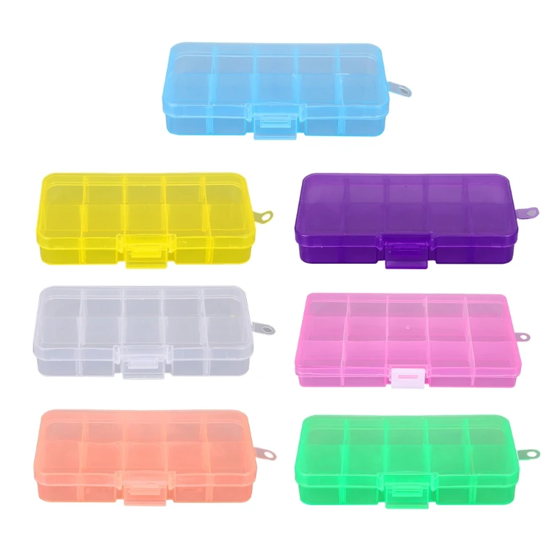 Прозрачная коробка с 10 сетками, это много для смешанных размеров mulitple формы ногтей ювелирных изделий.