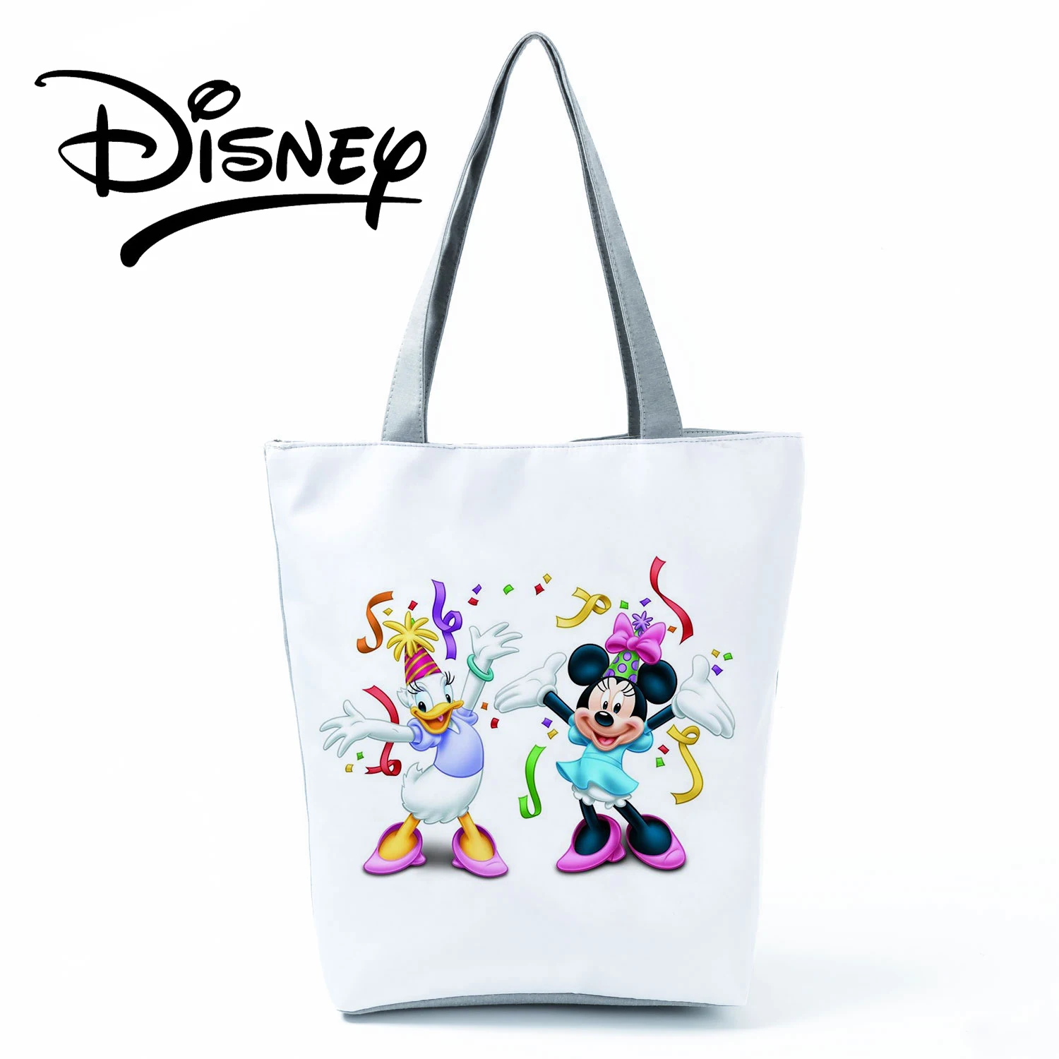 Disney Дональд Дак сумки с Мики высокой емкости мультфильм девушка сумка на плечо для хранения многоразовая сумка для покупок Женская дорожная пляжная сумка