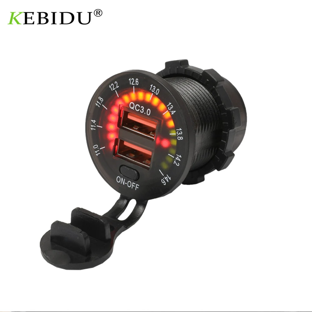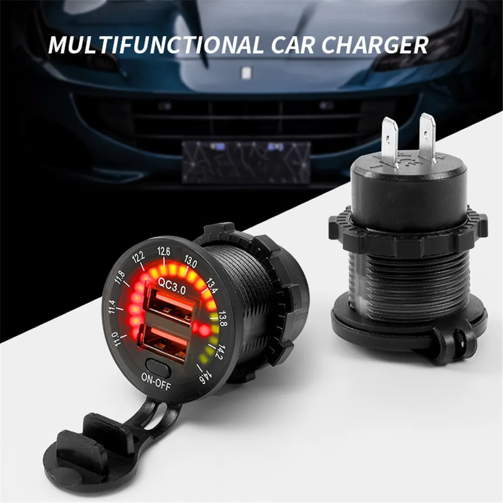 Зарядное устройство QC3.0 с двумя USB-портами, переключатель вольтметра водонепроницаемая розетка 36 Вт, 12 В, 24 В, USB-порт для быстрой зарядки 12 В, для автомобилей, лодок, мотоциклов, грузовиков