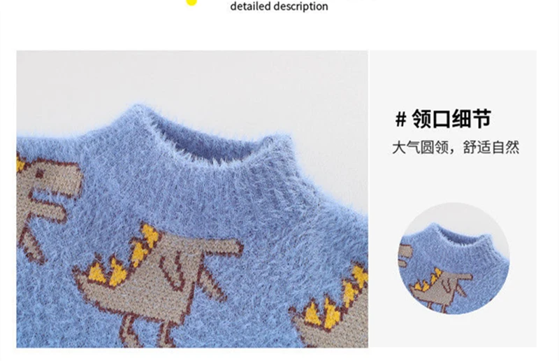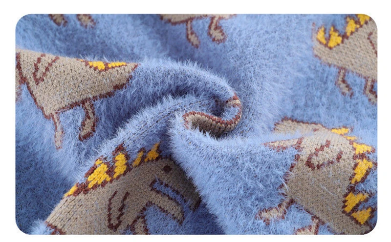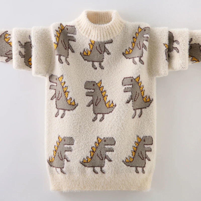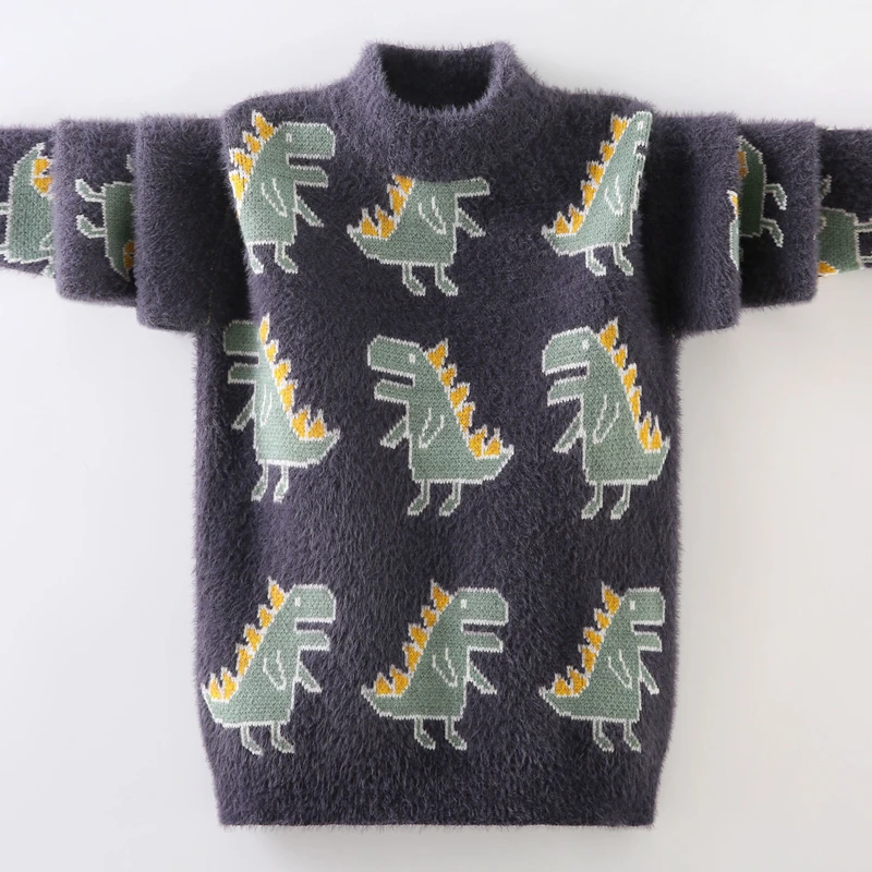 Зимний свитер для мальчиков, Подростковая трикотажная одежда, мультяшный динозавр, водолазка, пуловеры, теплые вязаные свитера для девочек, детская одежда, топы, одежда