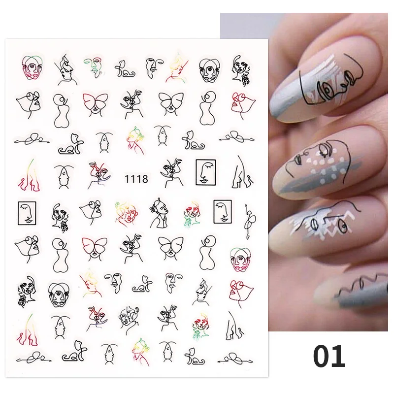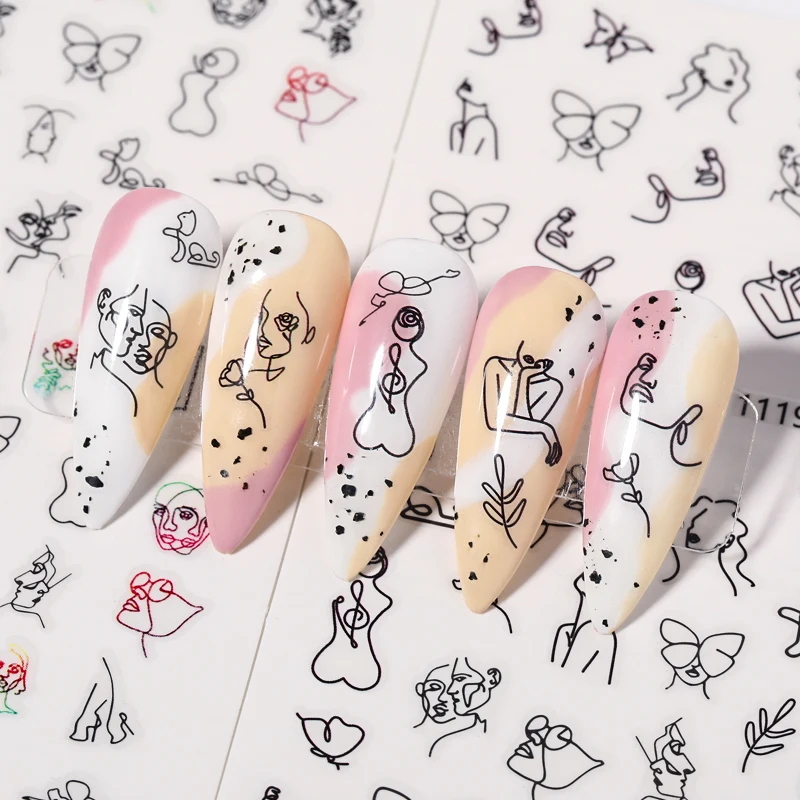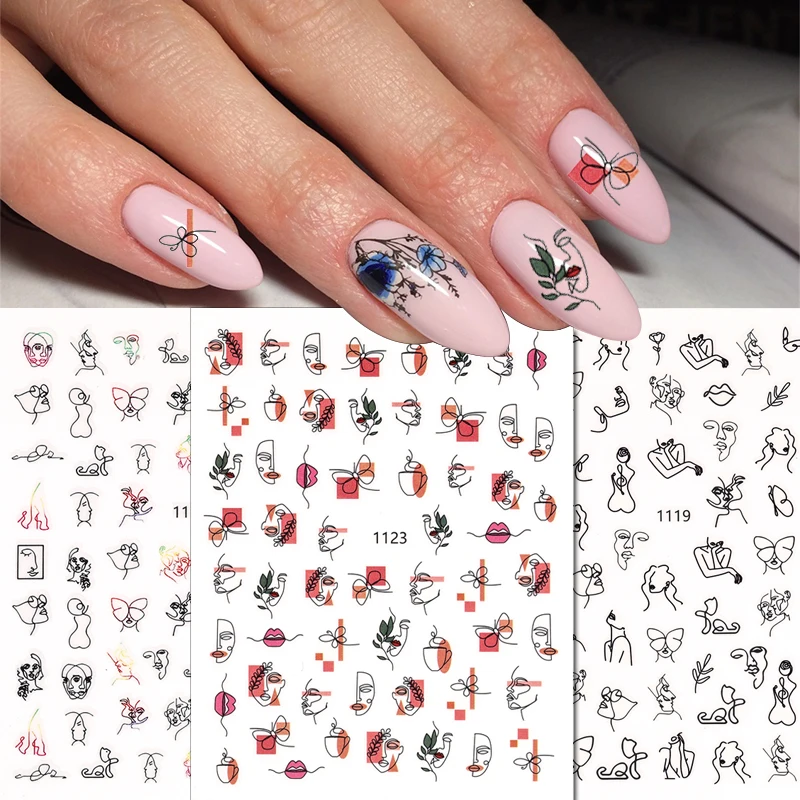 Абстрактные линии лица 3D наклейки на ногти цветок листьев наклейки для маникюра DIY Переводные слайдеры украшения для ногтей