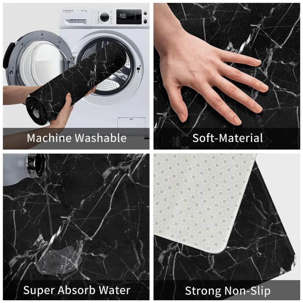 Черный Мраморный Придверный коврик, коврик, ковер из полиэстера, нескользящий напольный декор для ванной, кухни, гостиной, балкона, прихожей, 40*60