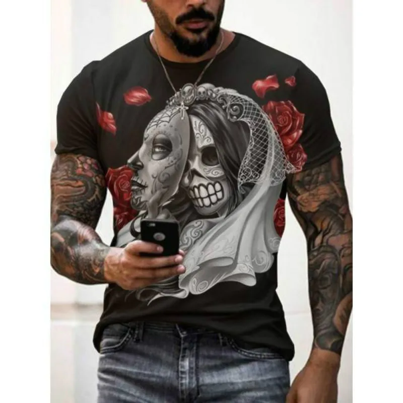 Мужская футболка с коротким рукавом, свитер с 3D-принтом черепа на ...