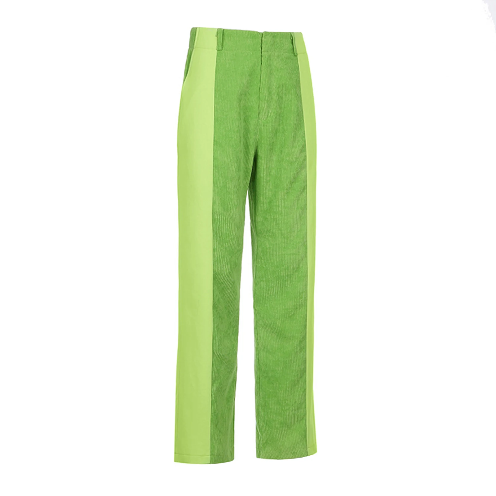 Женские прямые брюки в стиле пэчворк, свободные зеленые хлопковые б...
