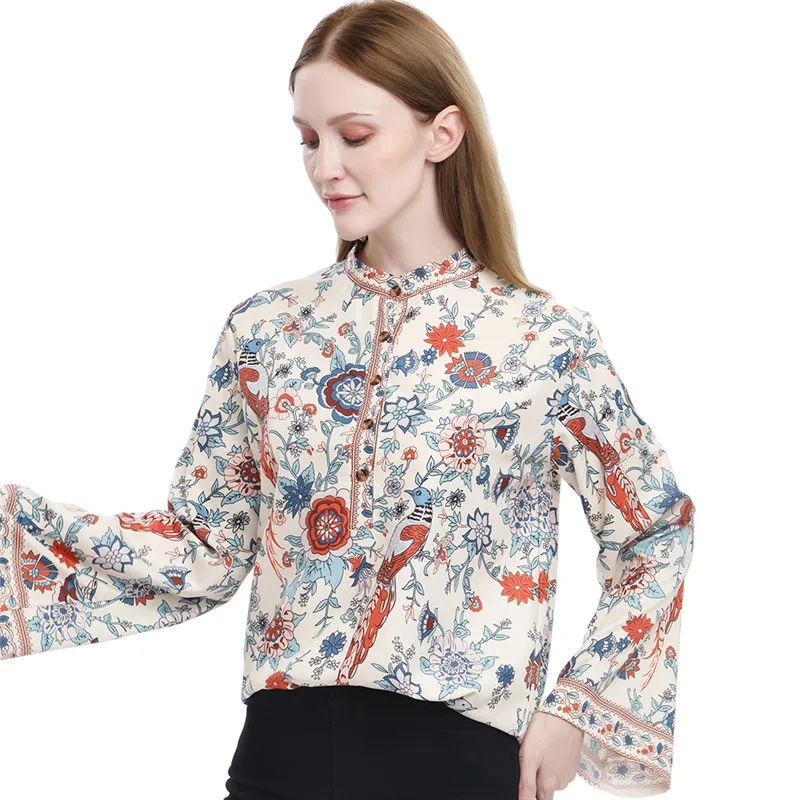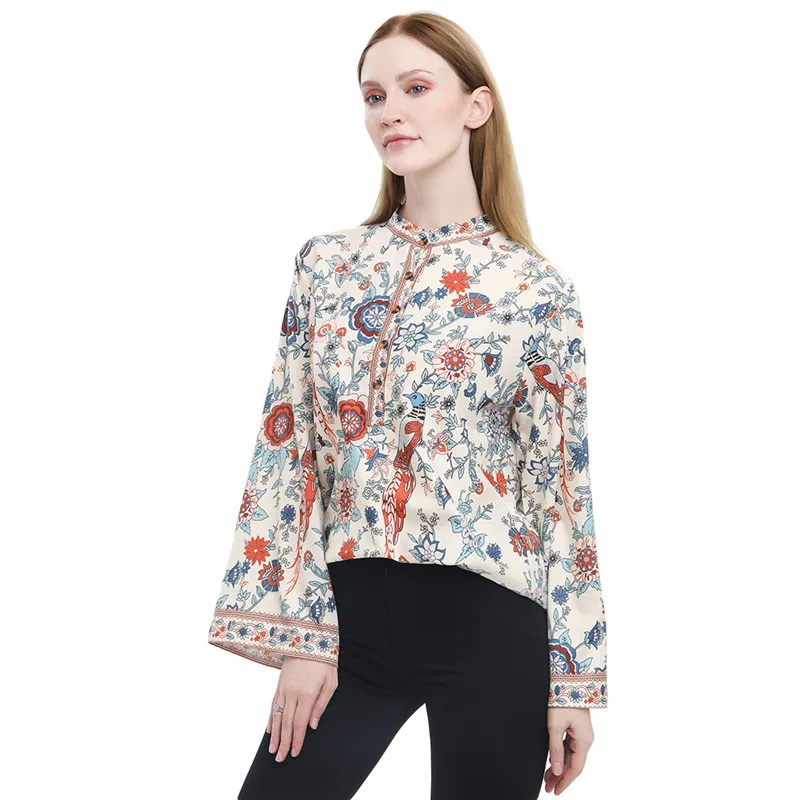 Осенние шикарные блузки, женские рубашки с длинным рукавом и цветочным принтом павлина, женские повседневные блузки в стиле бохо с V-образным вырезом, женские топы