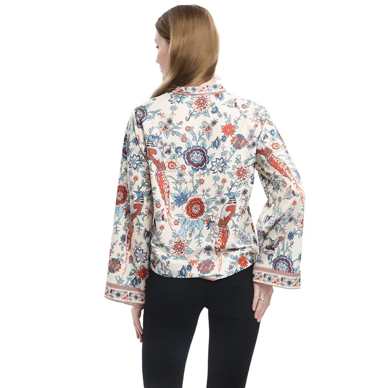 Женская блузка с павлином, с цветочным принтом, длинным рукавом и V...