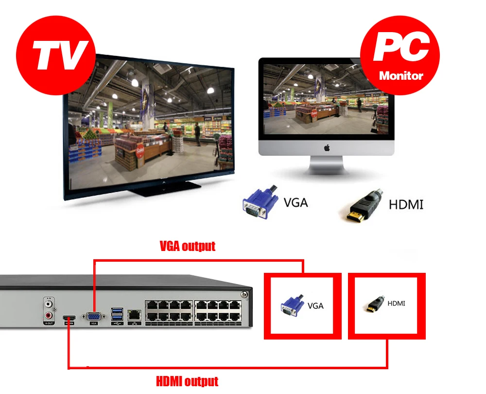 Video16CH POE input/1CH VGA, 1CH HDMI output