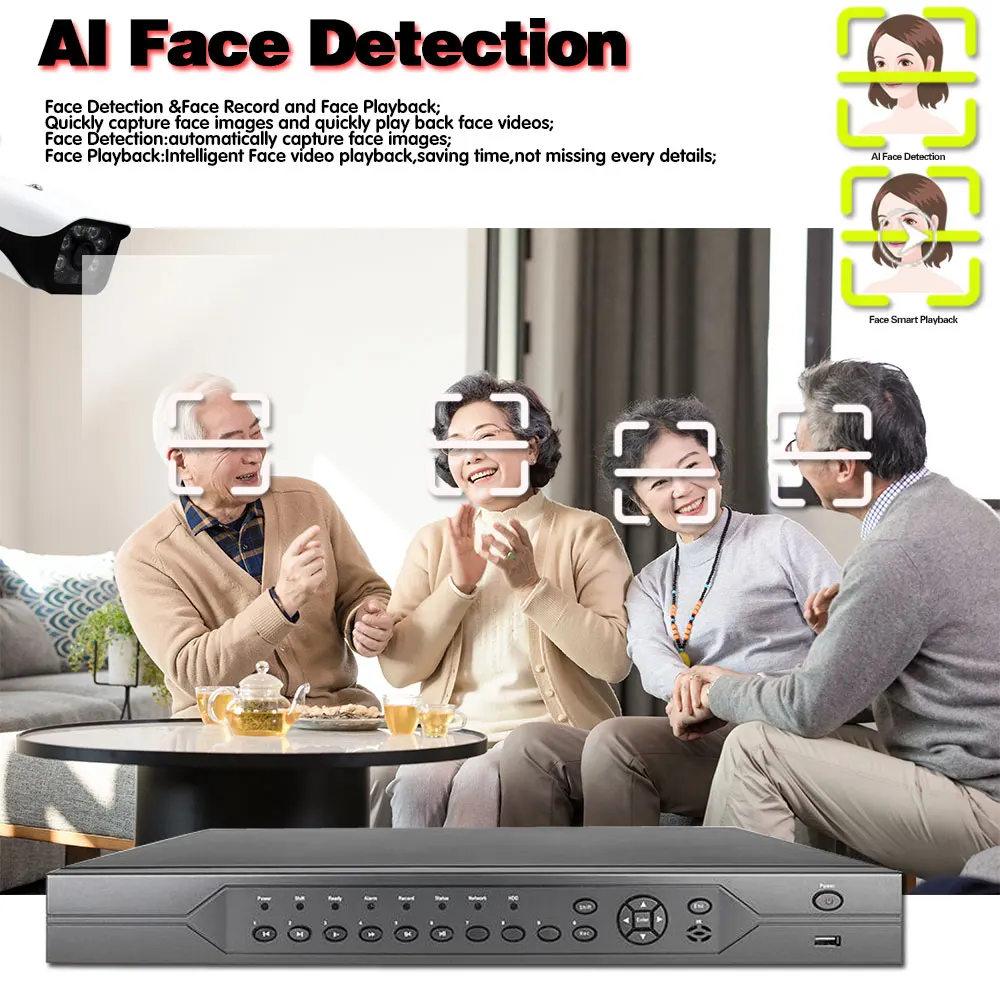 Сетевой видеорегистратор H.265, 16-канальный сетевой видеорегистратор POE NVR 4K P2P, с функцией распознавания лица 8 Мп, 5 МП, 8 каналов