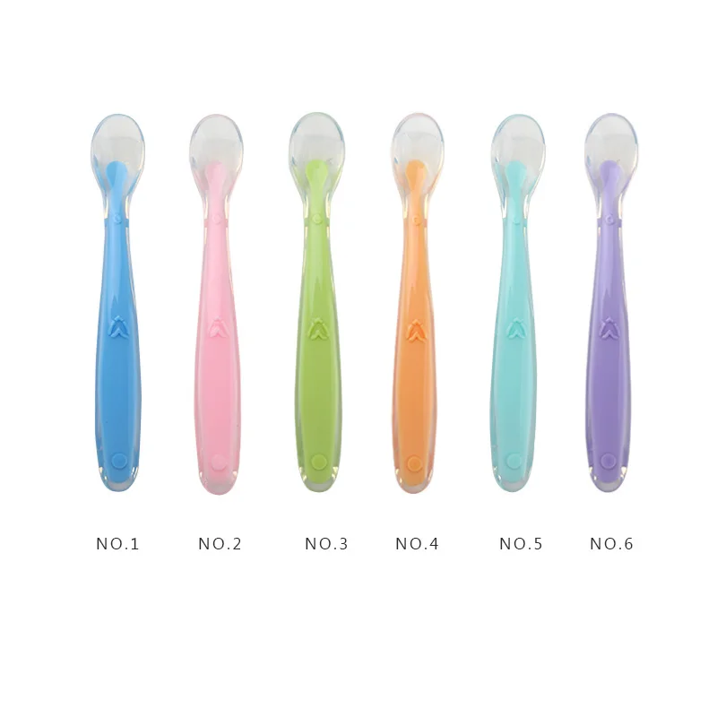 Детская Мягкая силиконовая ложка, ложка конфетного цвета с датчиком...