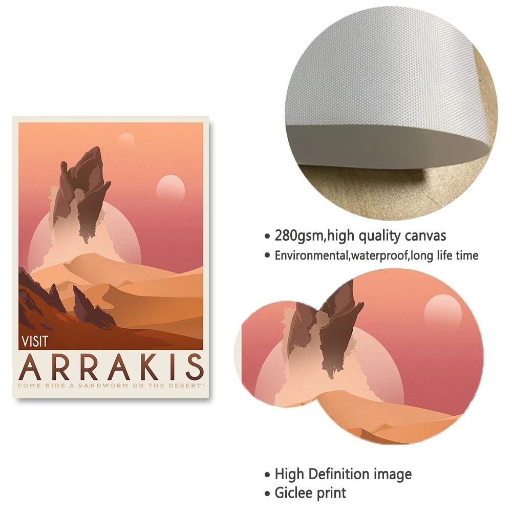 Плакат Arrakis с изображением дюны, ретро, путешествия, холст, настенные картины, научная классика, художественная литература, СПАЙС, космос, идея для подарка для гостиной