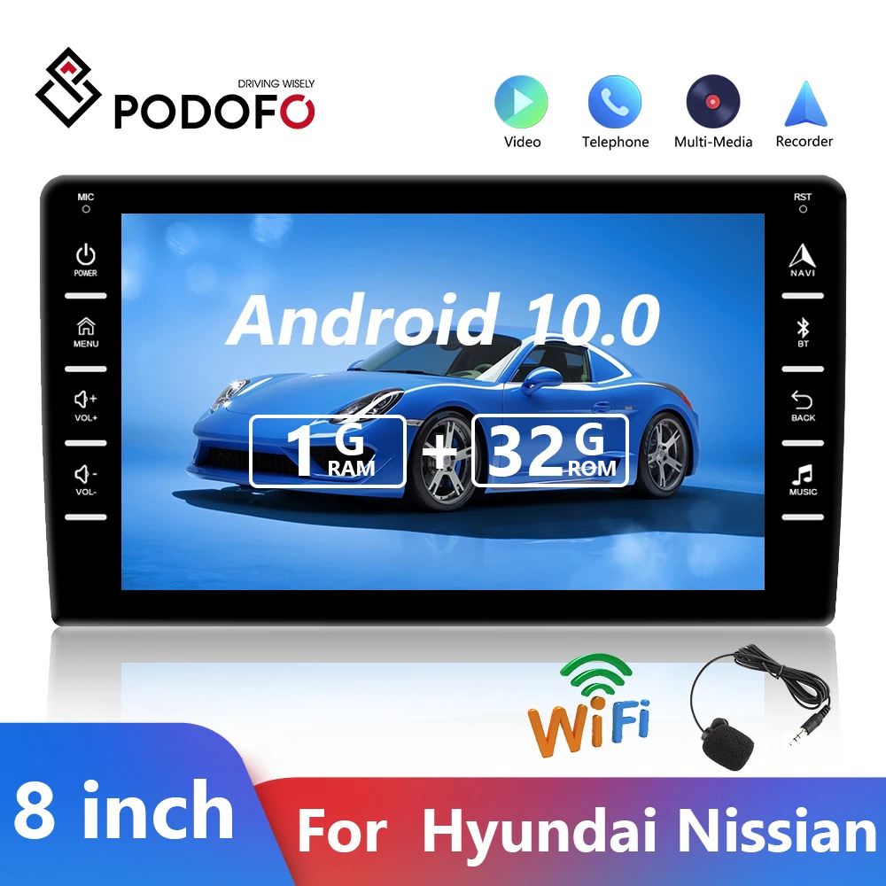 Автомагнитола Podofo, универсальная мультимедийная стерео-система на Android, с GPS, 1 ГБ ОЗУ, 32 Гб ПЗУ, для Volkswagen, Nissan, Hyundai, Kia, Toyota, Lada, типоразмер 2 Din