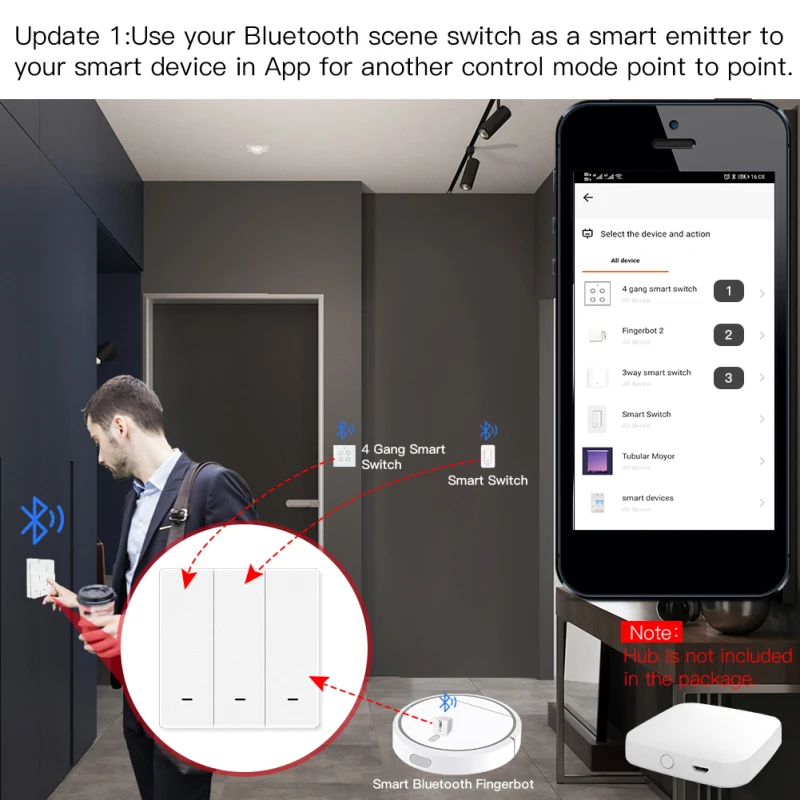 1. Умный автоматический беспроводной сценический переключатель Tuya с поддержкой Bluetooth на любые умные устройства Tuya в приложении Smart Life для установки различных сцен для вашей умной жизни. Нажмите-to-run, чтобы получить еще один более легкий контроль для всех смарт-устройств Tuya с одной клавишей на переключателе. Каждая кнопка переключения может удовлетворить несколько потребностей, Реализуя различные сцены. Вообразите умную связь, чтобы создать бесконечное пространство с проводным переключателем сцены.