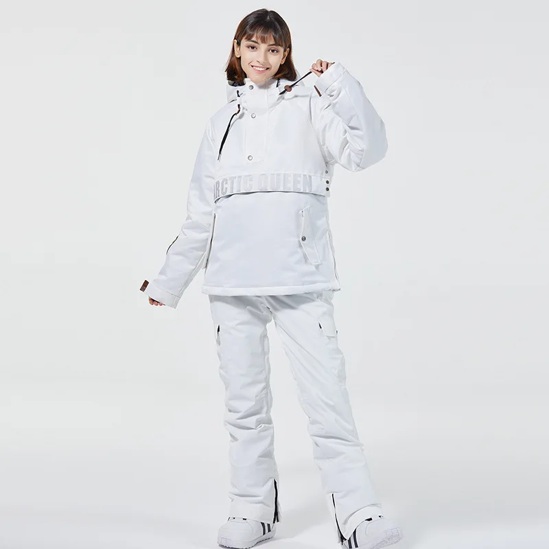 2021 женский лыжный костюм, зимний теплый лыжный комплект с капюшоном, ветрозащитная водонепроницаемая куртка и брюки, лыжный костюм для сноуборда, Женский унисекс