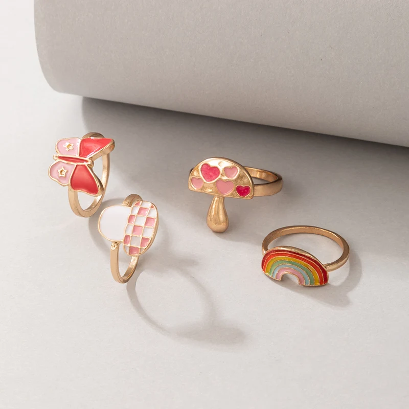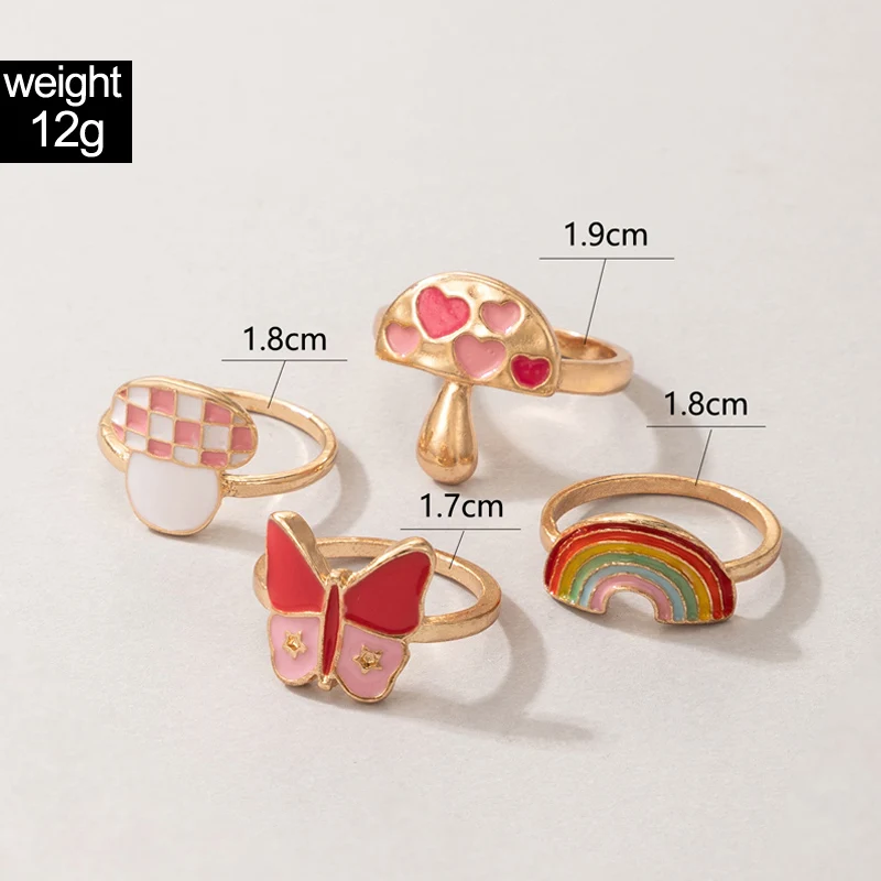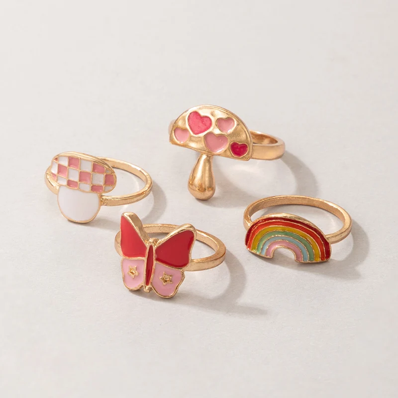 Набор Колец Tocona 4 шт.компл. красочный капающий масляный Радужный гриб набор для женщин красивая бабочка ювелирные изделия для вечеринки аксессуары 19844