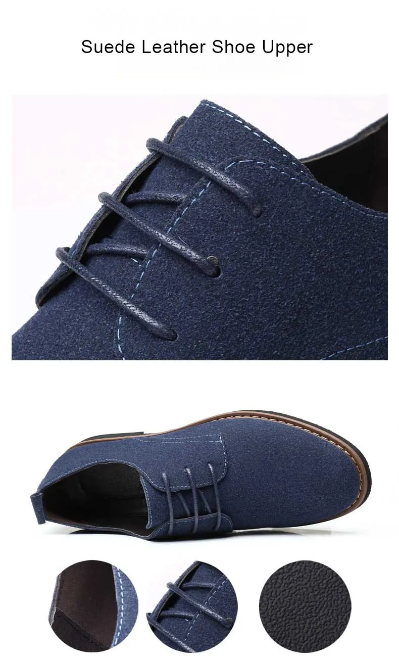 Мужские классические замшевые туфли, темно-синие кожаные лоферы ручной работы на шнуровке, оксфорды на плоской подошве, большие размеры, весна-осень