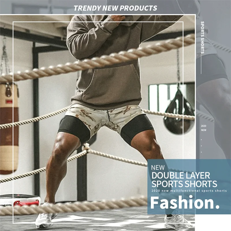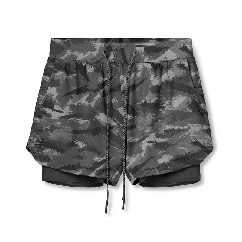 Мужские камуфляжные шорты для тренировок 2 в 1, двухуровневые быстр...