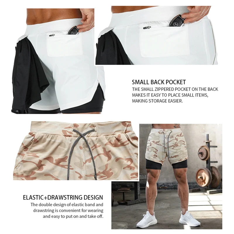 Мужские камуфляжные шорты для бега, 2 в 1, быстросохнущие спортивные шорты для бега и тренировок, мужские спортивные шорты, 2021