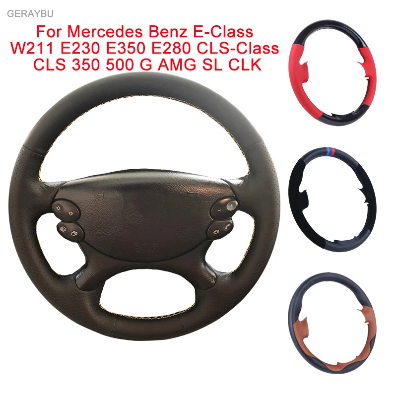 Кожаная шитая вручную модель чехол рулевого колеса автомобиля для Mercedes Benz E-Class W211, E230, E350, E280, CLS-Class CLS 350, 500 AMG SL CLK