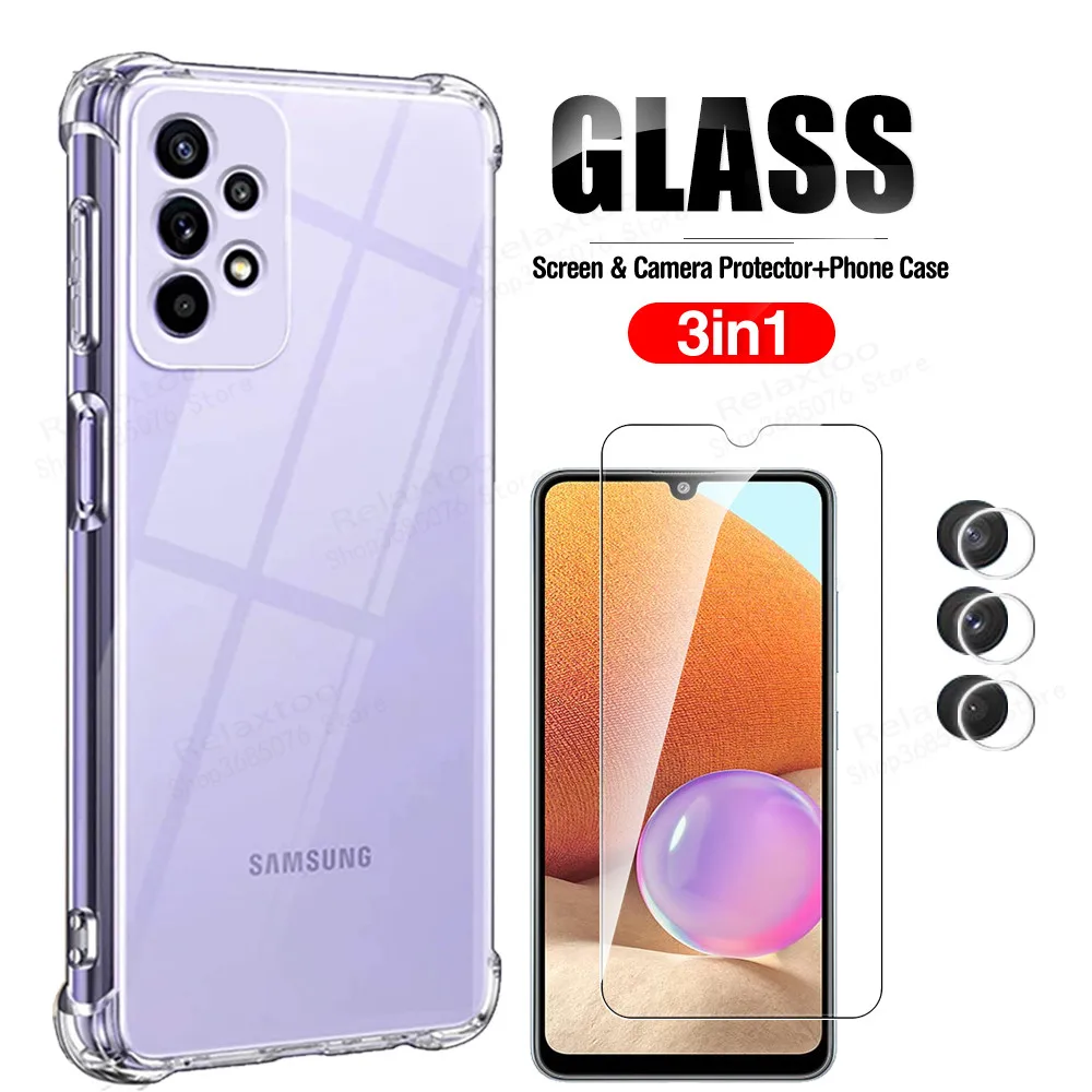 Прозрачный силиконовый чехол из ТПУ для Samsung A52 A72 A32 A02, закаленное стекло для Galaxy A 52 72 32 02 S, защитная пленка для камеры