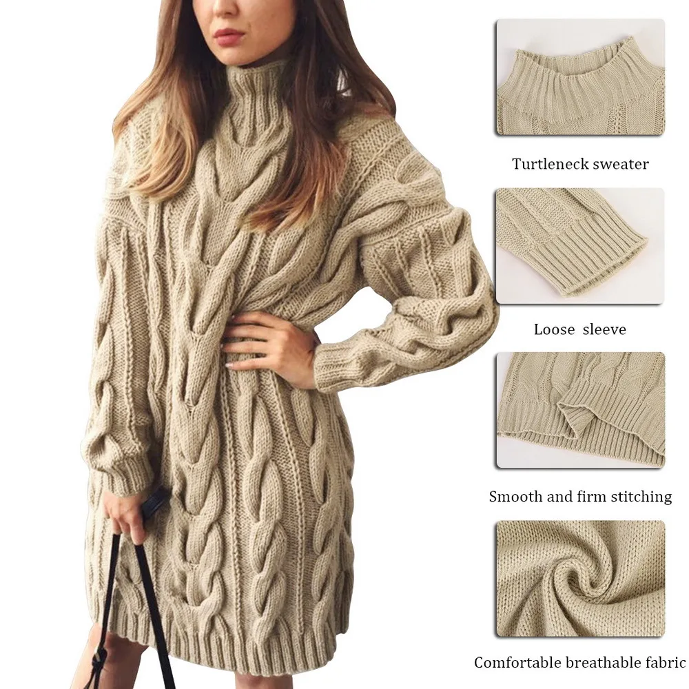 Водолазка миди трикотажное платье для женщин зимняя одежда длинный ...