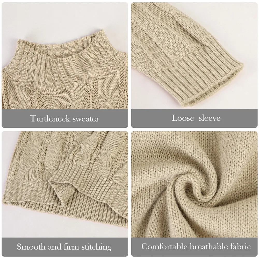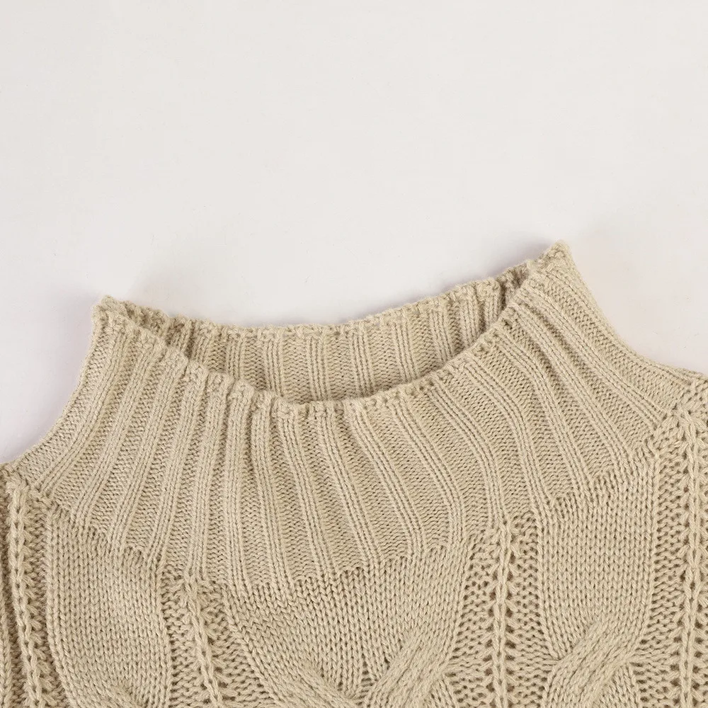 Женский вязаный свитер, свободная шерстяная рубашка с высоким воротником и переплетенным узором, Осень-зима 2021
