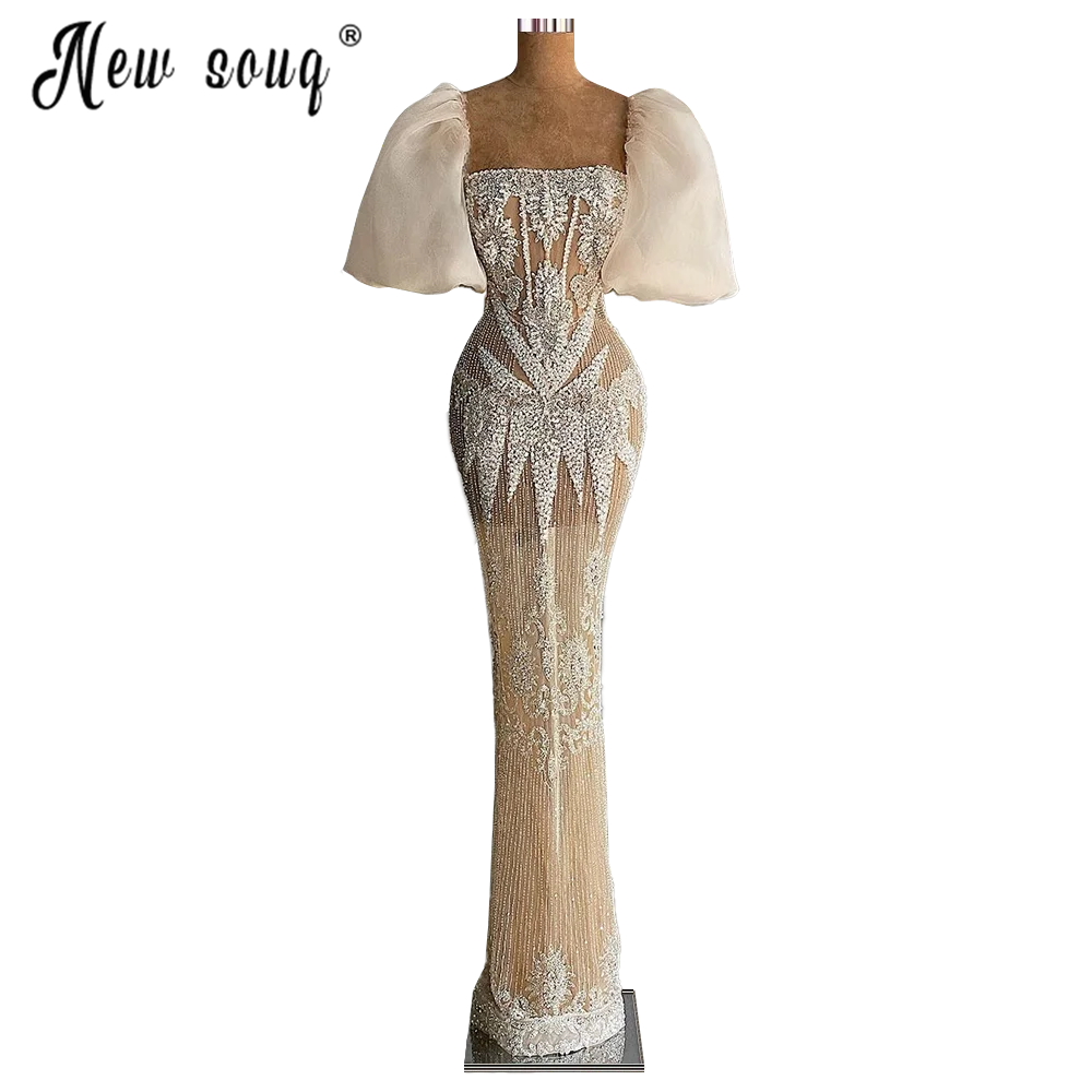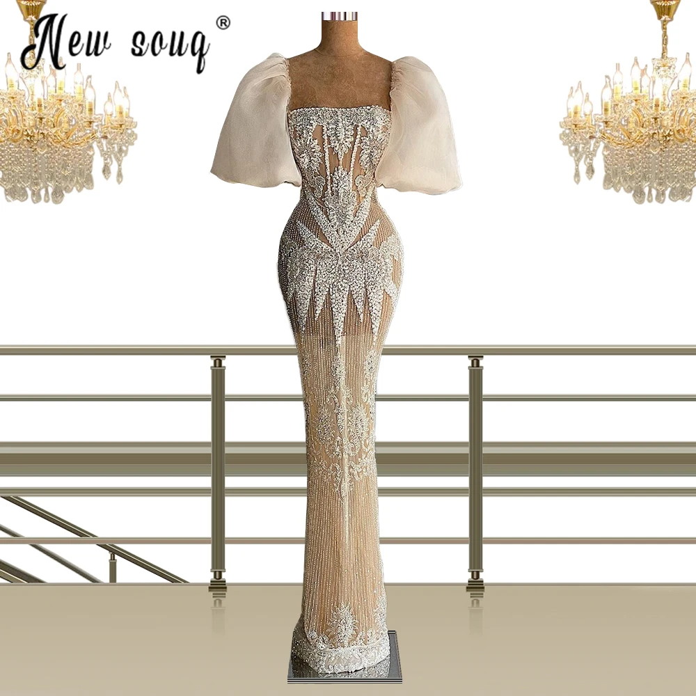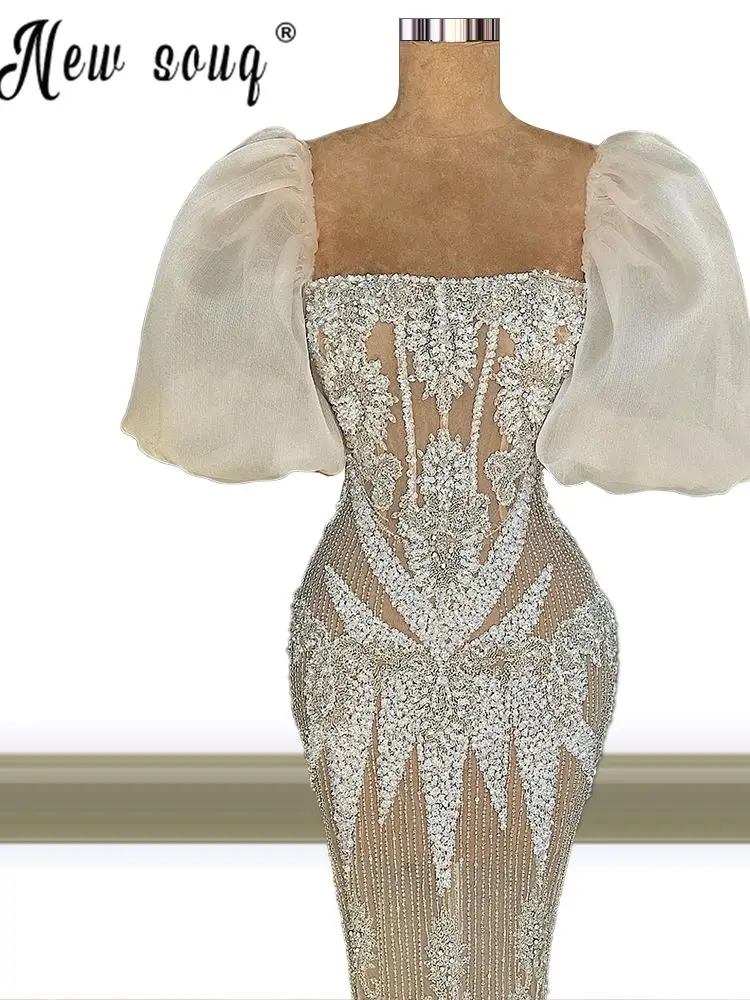Женское вечернее платье-Русалка стразы, длинное платье с квадратным вырезом и пышными рукавами для выпускного вечера