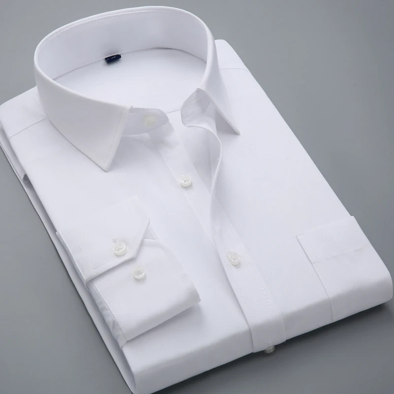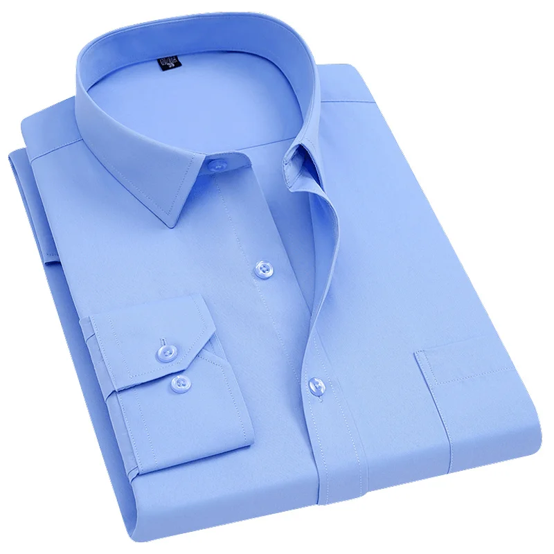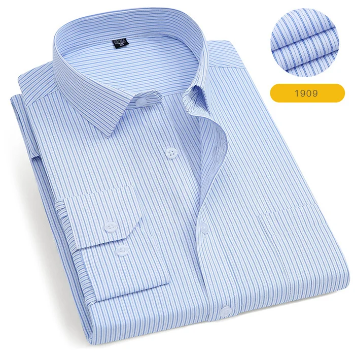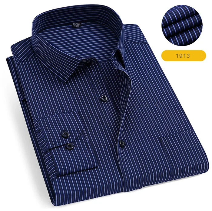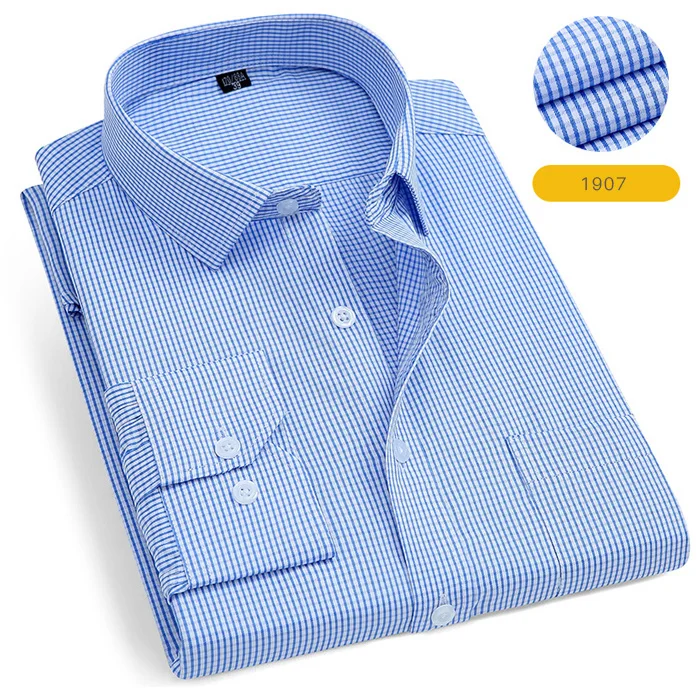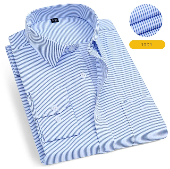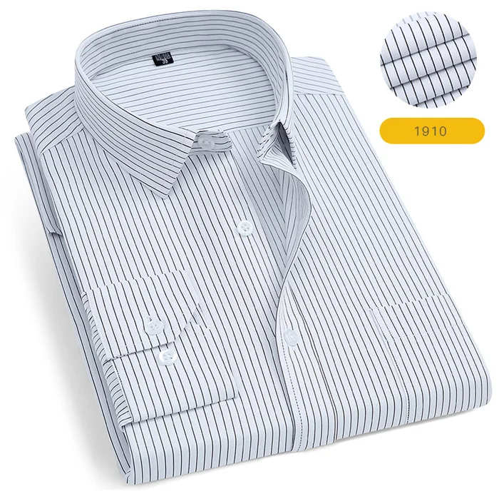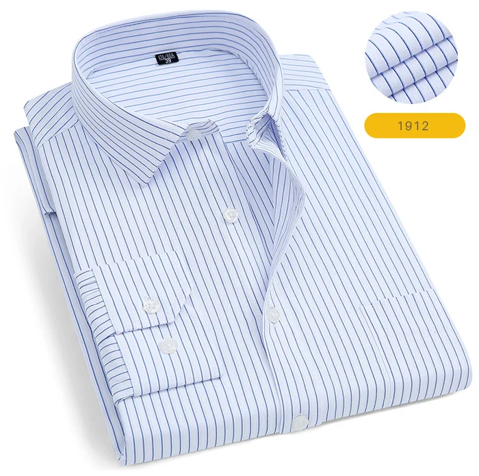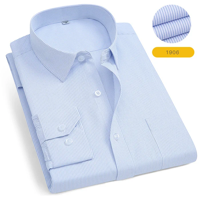 Мужская Однотонная рубашка с длинными рукавами, приталенная деловая рубашка в клеткув полоску, деловая повседневная одежда для работы