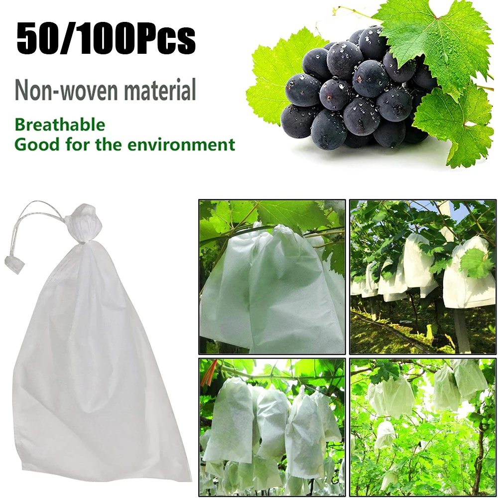 50/100 шт мешки для защиты винограда нетканый материал анти-птица насекомых защитный чехол с шнурком для фруктов цветок овощей