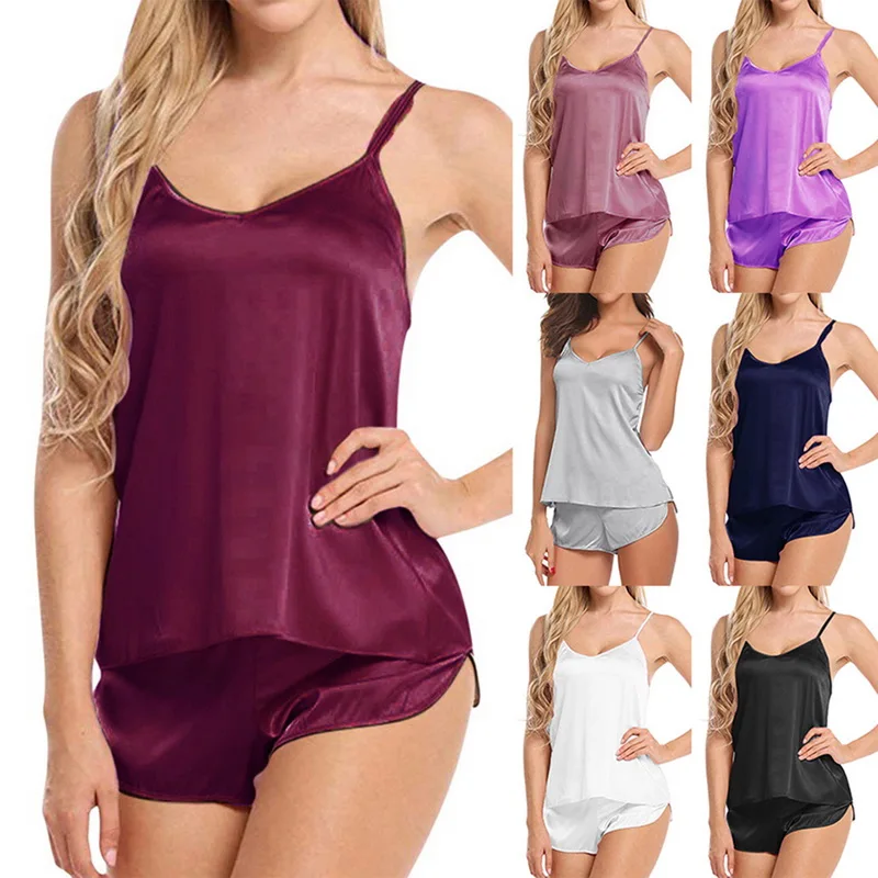 Женские пижамные комплекты, шелковая атласная пижама для девочек, одежда для сна, одежда для сна, домашняя одежда, однотонная удобная мягкая высококачественная одежда для дома